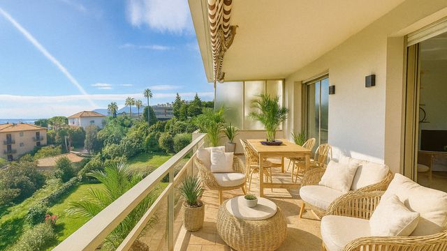 Live the dream of the South of France with this fully renovated, top-floor apartment offering breathtaking panoramic sea views over the Bay of Cannes and the Lérins Islands.