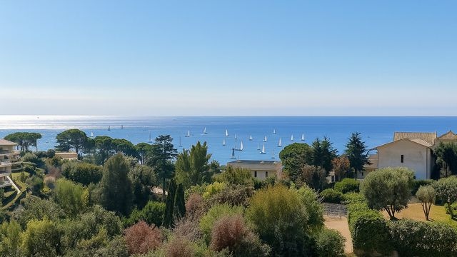 Live the dream of the South of France with this fully renovated, top-floor apartment offering breathtaking panoramic sea views over the Bay of Cannes and the Lérins Islands.