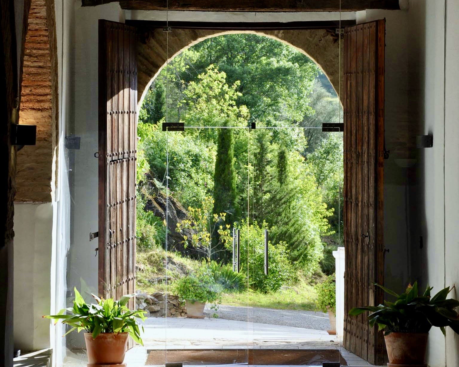 Entrando a través de una típica y pesada puerta de madera andaluza y puertas automáticas de cristal se encuentra el gran salón de eventos con sus columnas arqueadas. También en este nivel se encuentra la antigua cocina con su alta chimenea para permitir la salida del humo de la cocción. Esta cocina no se utiliza, ya que en la parte trasera de la sala hay una cocina comercial con acceso al exterior y una zona cubierta ideal para la preparación de alimentos. También en la parte trasera se encuentra la antigua capilla. Los propietarios descubrieron arte e inscripciones en las paredes al renovar el edificio, que se han conservado junto con otros elementos originales. También hay un patio en la parte trasera de la sala, ideal para desayunos al aire libre.
