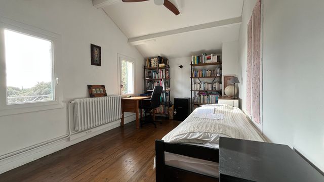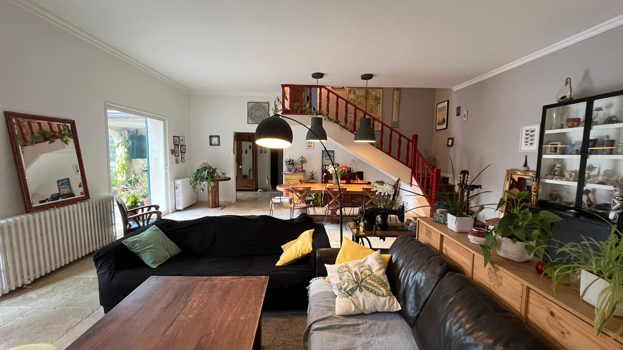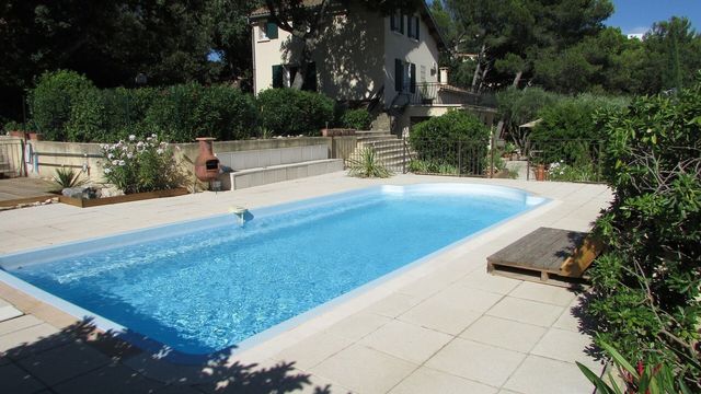 In the 1,900 m² garden, planted with Mediterranean trees, there is a swimming pool with two terraces shaded by pergolas, a 35 m² wooden outbuilding, and a carport that can accommodate two vehicles.