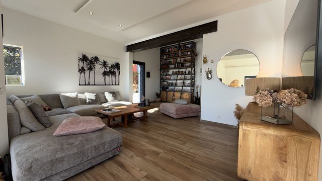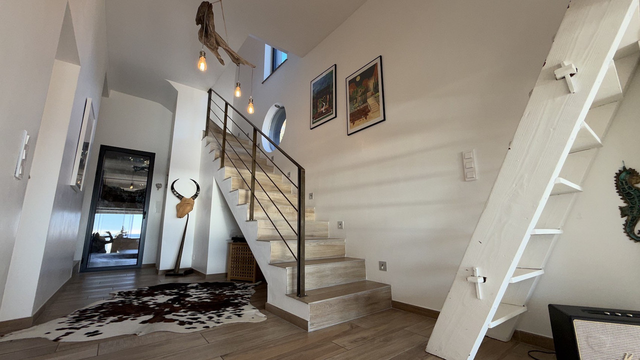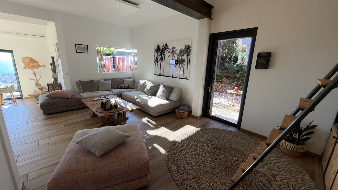 A41649EOB83 - Let yourself be captivated by this exceptional house located in Carqueiranne, where every sunrise and sunset is a work of art. Overlooking the bay, it is a true gem offering a unique and breathtaking panoramic sea view of the neighboring islands of Porquerolles, Port Cros, Gien, the Hyères salt marshes… A constant spectacle that invites serenity and reverie.