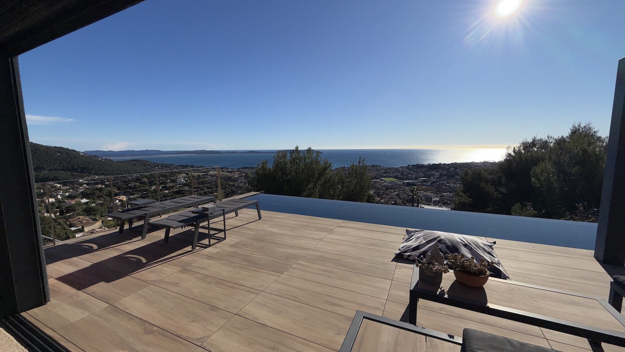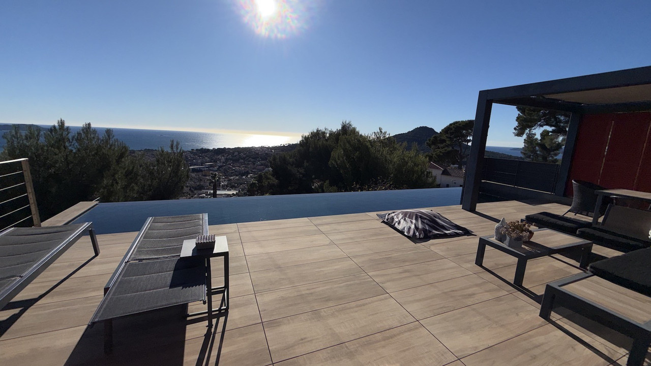 Detached house of 162m² on a plot of 1290m², panoramic sea view, swimming pool, Carqueiranne