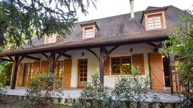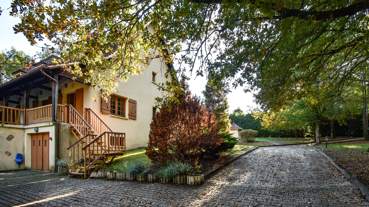 A40187LBC24 - Beautiful property on large wooded and enclosed grounds of 5097m2, comprising a house of 272m2 with large living/dining room of 38m2 with fireplace, separate kitchen, furnished, 5 bedrooms, 3 shower rooms and a bathroom, 4wc, billiard room, basement with gym, laundry room, garage.