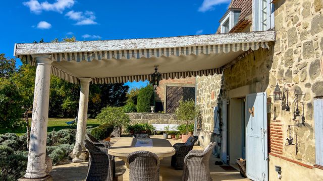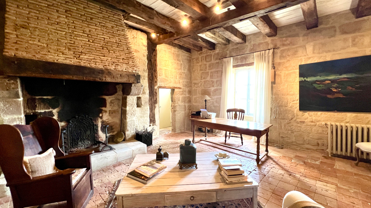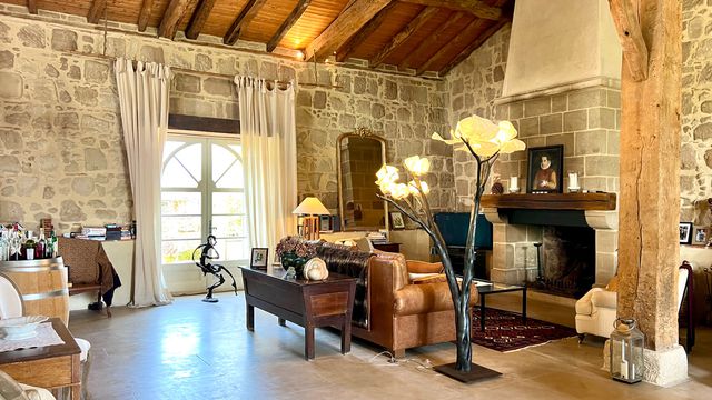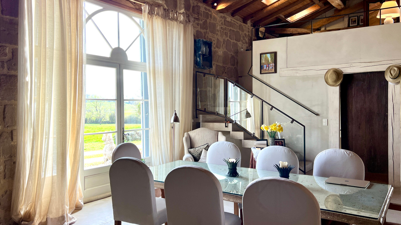 A41324GJP47 - Just 12km from Eymet in the Lot et Garonne countryside, discover this delightful country property, stylishly renovated and set in 4.2 hectares of peaceful, rolling grounds. Blending charm and comfort, the property can be divided into two independent living spaces, ideal for receiving guests or extended family. Brimming with original character, exposed stone walls, beams, terracotta floors this home has generous, light-filled rooms including a large open-plan kitchen, elegant sitting room with fireplace, and spacious bedrooms with ensuite bathrooms. The second part of the house features an impressive high-ceilinged living room and mezzanine, exceptional volume and versatility. Outside, a swimming pool, lovely terraced seating areas, a traditional tobacco barn, and an attached stone barn with potential for further extension. Only a few minutes from amenities (6km). An exceptional countryside retreat with endless possibilities. Eymet 12km, Bergerac 37km.