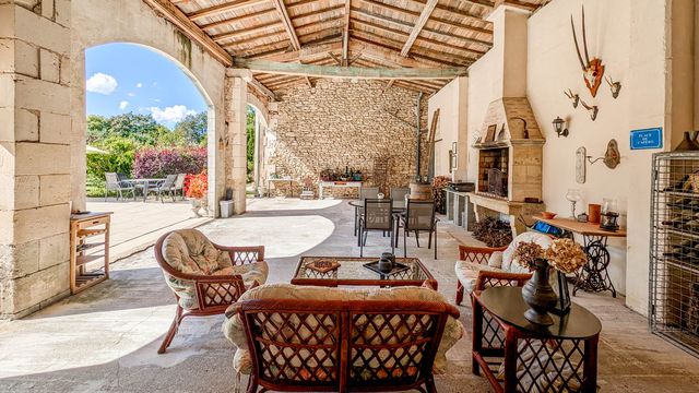 The propery is arranged around a main house (4/5 bedrooms), two independent guest houses (2 bedrooms each), a vast mature garden of 8,318 m², a 10 × 5 m swimming pool with a large summer lounge, and numerous outbuildings (garage, barns, workshops).