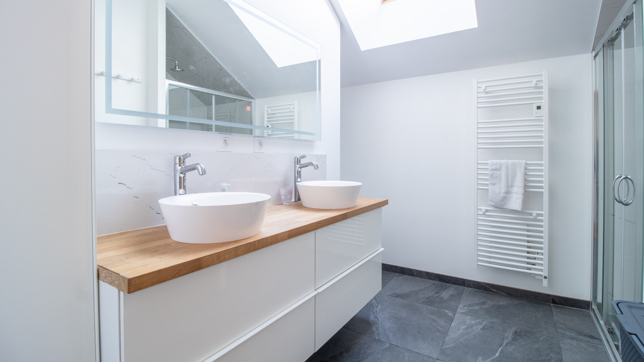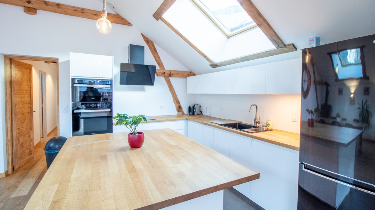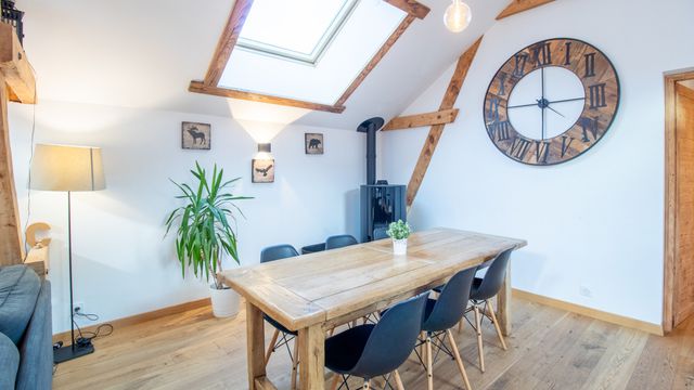 A41096SLE73 - In the heart of Bozel, just moments from the ski shuttles linking to Courchevel and the world-renowned 3 Valleys ski area, this beautifully renovated property (2021) perfectly combines Alpine charm with modern comfort. Built over a spacious 120 m² lower level with a large garage, workshop and storage areas, it offers approximately 120 m² of bright, elegant living space upstairs. The impressive 48 m² open-plan living area features exposed beams, skylights and seamless access to a superb 27 m² south-facing terrace, ideal for soaking in the mountain sun. The home includes four double bedrooms, one with a private en-suite shower room, a second refined bathroom, and a functional laundry room. High-quality finishes, a pellet stove, a wood-burning stove and electric heating ensure year-round comfort. Shops, schools and amenities are within walking distance — a true Alpine haven in one of Savoie's most sought-after villages.