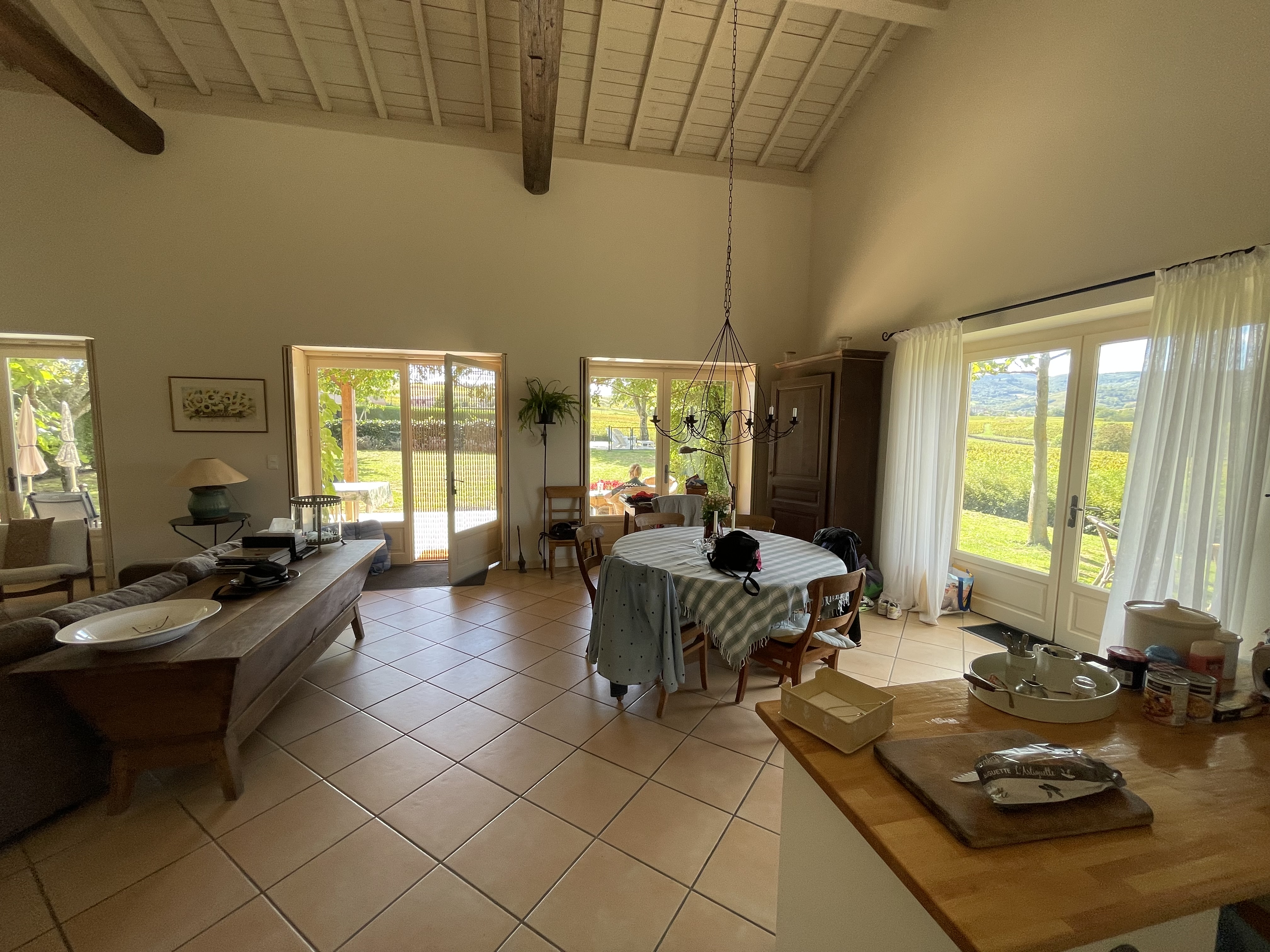 A l'extérieur se trouve une piscine de 6 * 11 m exposée au sud avec une grande terrasse pour se relaxer avec une vue panoramique sur les vignes du Beaujolais