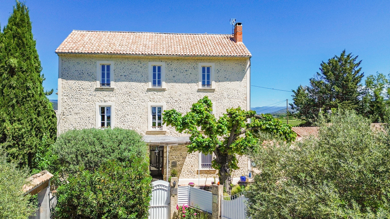 A37458DAD04 - Approximately 45 minutes from Aix-en-Provence you'll find this spectacular and unique property, a former "Maison d'hôtes". A stunning traditional Provençal stone house built in 1894, with beautiful original character details such as tomettes de Provence floor tiles, meticulously restored stone walls, preserved original wooden cabinets and beams, with around 3 meter high ceilings on all floors.