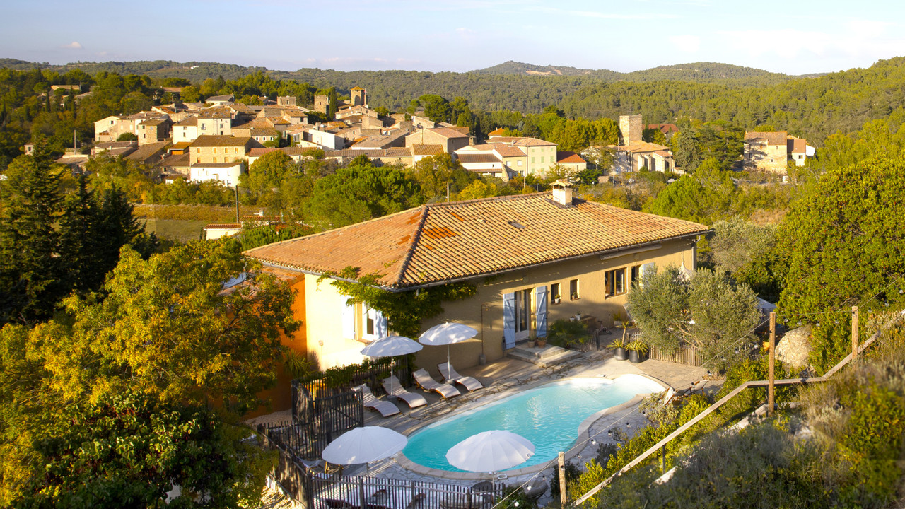 A41945CST34 - Perched in a commanding position in the heart of the Minervois, this beautifully renovated stone estate offers awe-inspiring, uninterrupted views over vineyards and countryside . The property combines an exceptional lifestyle with proven income potential, comprising a spacious three-bedroom main house and four independent gîtes.