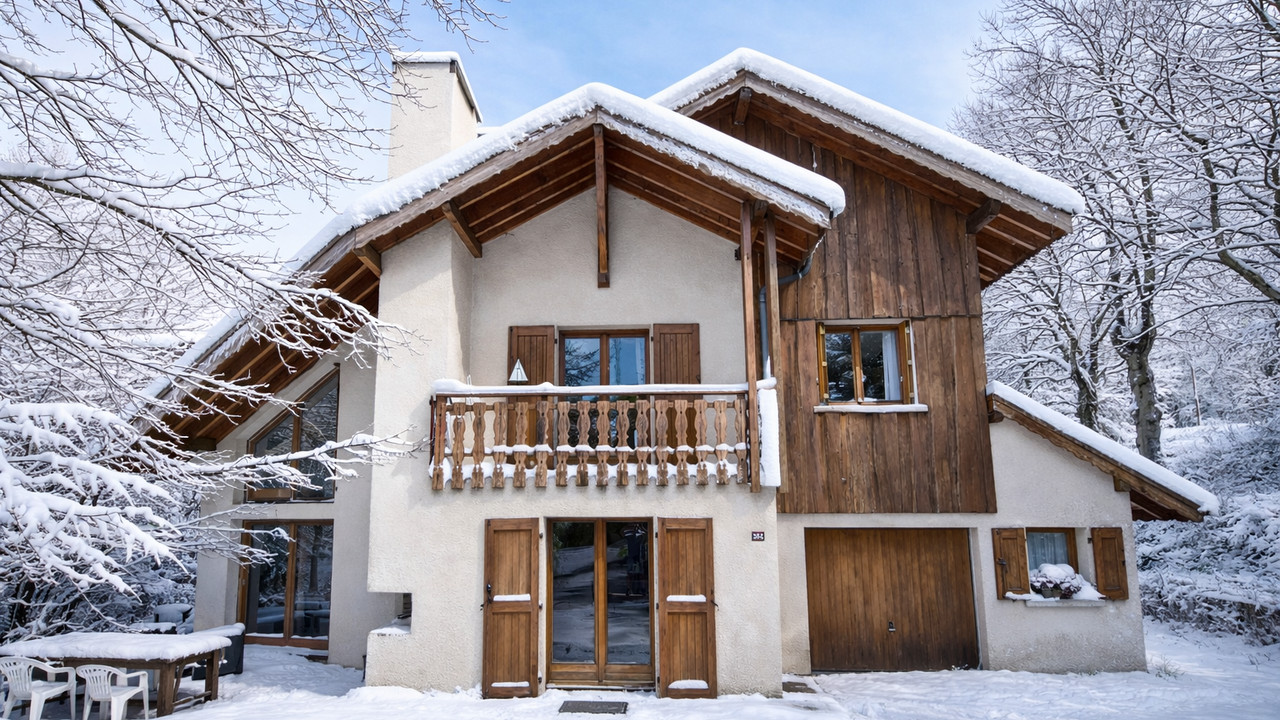 A31219NDY38 - This lovely chalet was built in 1992 and has a habitable surface of 207m2 with a total floor space of 252m2. It sits on a plot of land 1235m2 offering a large private garden surrounded by mature trees. Proximity to the main ski station is a key feature being only 4km by road, a short 5 min drive to access the main lift system including the new Jandri S3 high speed telecabin leading to the glacier, the largest of its kind in the world opening in December 2024. Alternatively, you can drive 1.3km to the nearest chairlift located in Mont de Lans village which offers free travel to the main resort summer and winter whenever the station is open. There is however a free ski bus in the winter.