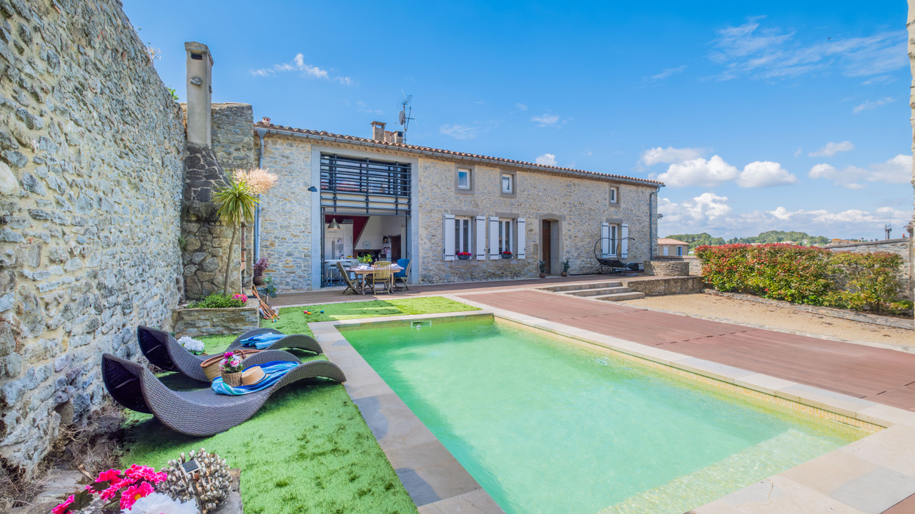 Beautifully renovated character stone home of 215m2 in a peaceful village just minutes from the medieval cité of Carcassonne. Set around a private walled courtyard with a stunning pool, the property also includes a separate two-bedroom annex with its own kitchen and gym—perfect for guests or holiday rental.