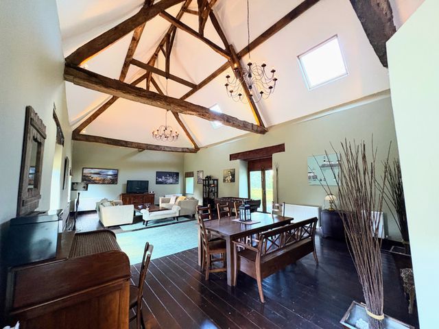 358.000 € ID: 176395Stunning 5-bedroom home featuring a breathtaking barn conversion at its heart. The impressive lounge and dining area boast soaring exposed beams, creating a unique blend of character and modern living. Spacious and versatile, the property offers ample accommodation, ideal for family life or entertaining. A rare opportunity to own a home where history meets contemporary comfort in a truly magnificent setting.