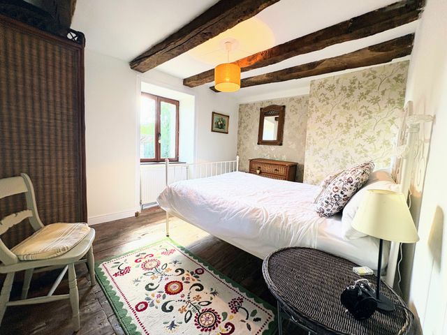 Step inside this exceptional home, full of warmth and character. The charming entrance invites you in, to the left, the beautifully converted barn showcases a magnificent main living area (75.3m²) and a stylish designed kitchen (23.45m²). At the end of the hallway, you will find a convenient guest WC, a laundry/boiler room (3m²), and access to the cellar. Completing the ground floor is a generously sized bedroom (17.2m²) featuring a fireplace, with ensuite shower room and WC (4.5m²).