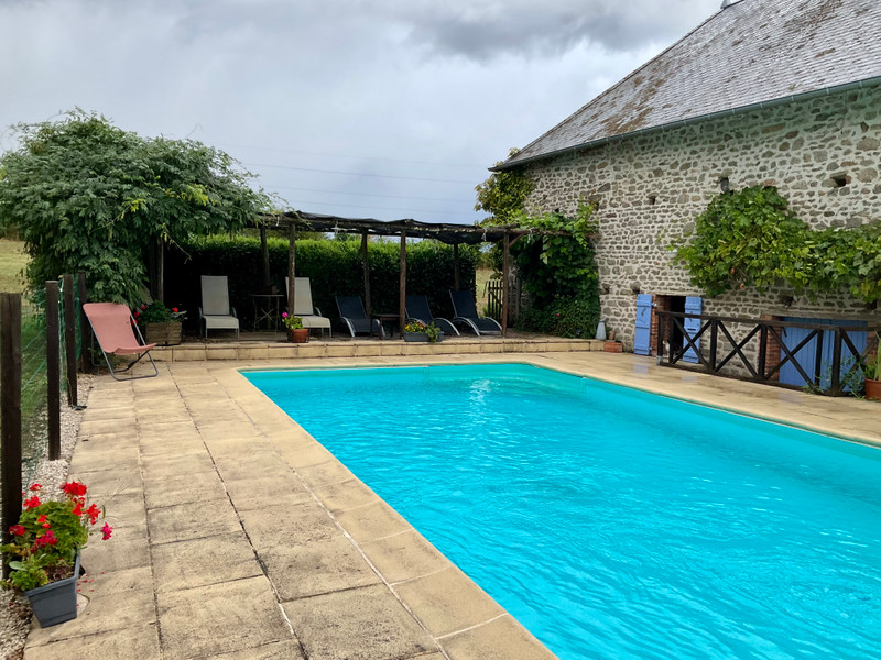 Farmhouse for sale in 2 ha countryside + outbuildings and pool. Creuse