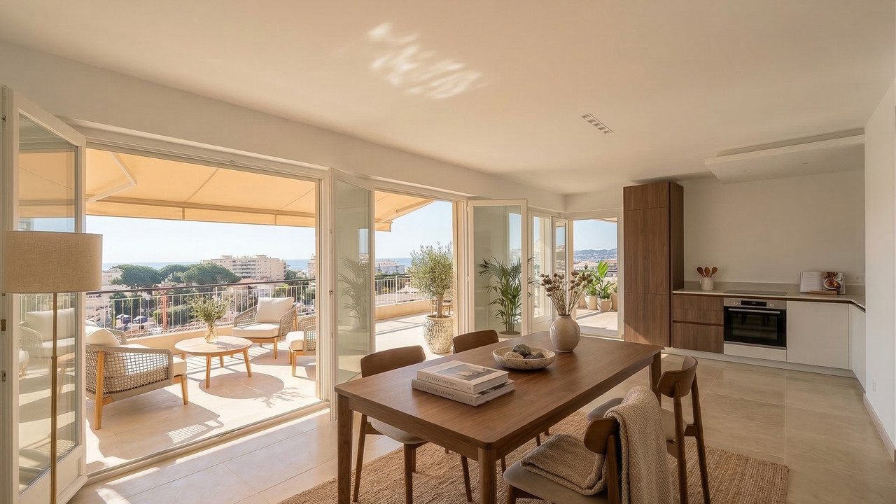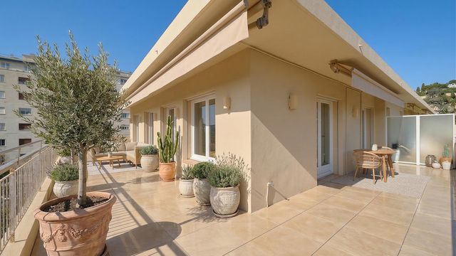 A43927VAP06 - Located in the Lower Fabron / Faculté de Lettres area, close to Magnan and the Promenade des Anglais, this fully renovated penthouse apartment offers an exceptional indoor-outdoor lifestyle.