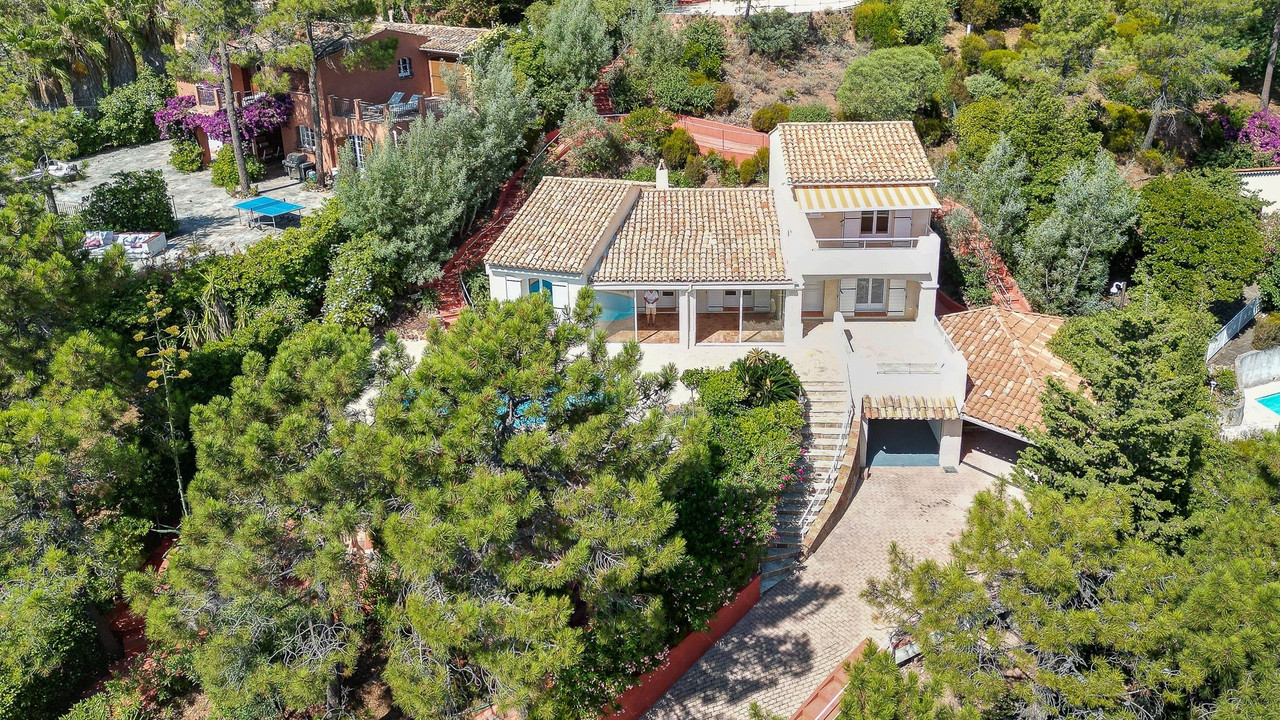 A41902RNW06 - Nestled in the heart of the Estérel Massif, this fully renovated villa enjoys a commanding position above Le Trayas, offering breathtaking panoramic views of the Mediterranean, the Estérel mountains, and the port of La Figueirette.