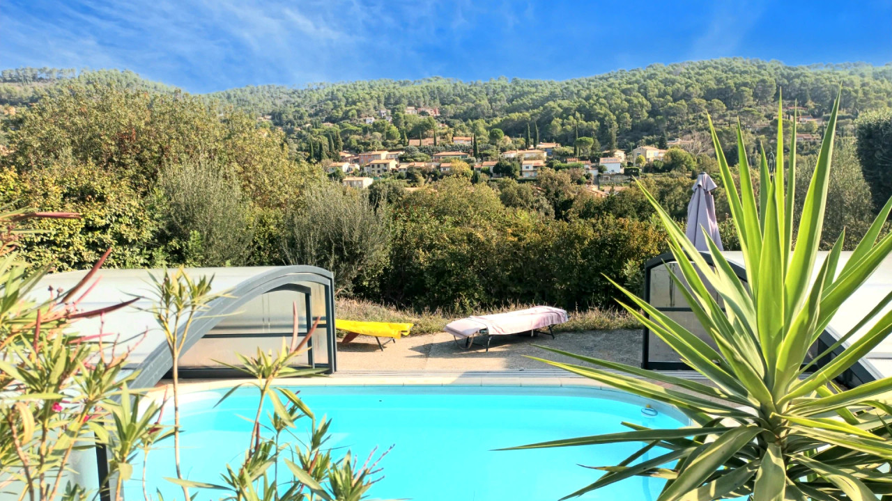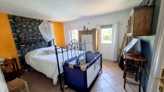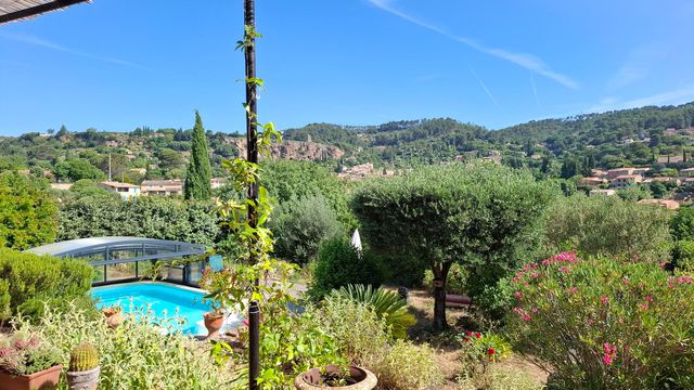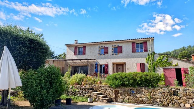 A32338GWI83 - Lovely 4 bedroom detached house in the famous village of Cotignac, Provence. 5 minute walk to the centre of Cotignac which is classed as one of the most beautiful villages in France. The property has fabulous views, garden, garage and swimming pool. There is a spacious living / dining room open to kitchen, second living room, 4 bedrooms all en-suite and a separate W.C. The property also benefits from central heating, air con, double glazing, wi-fi, mains drains and city water.