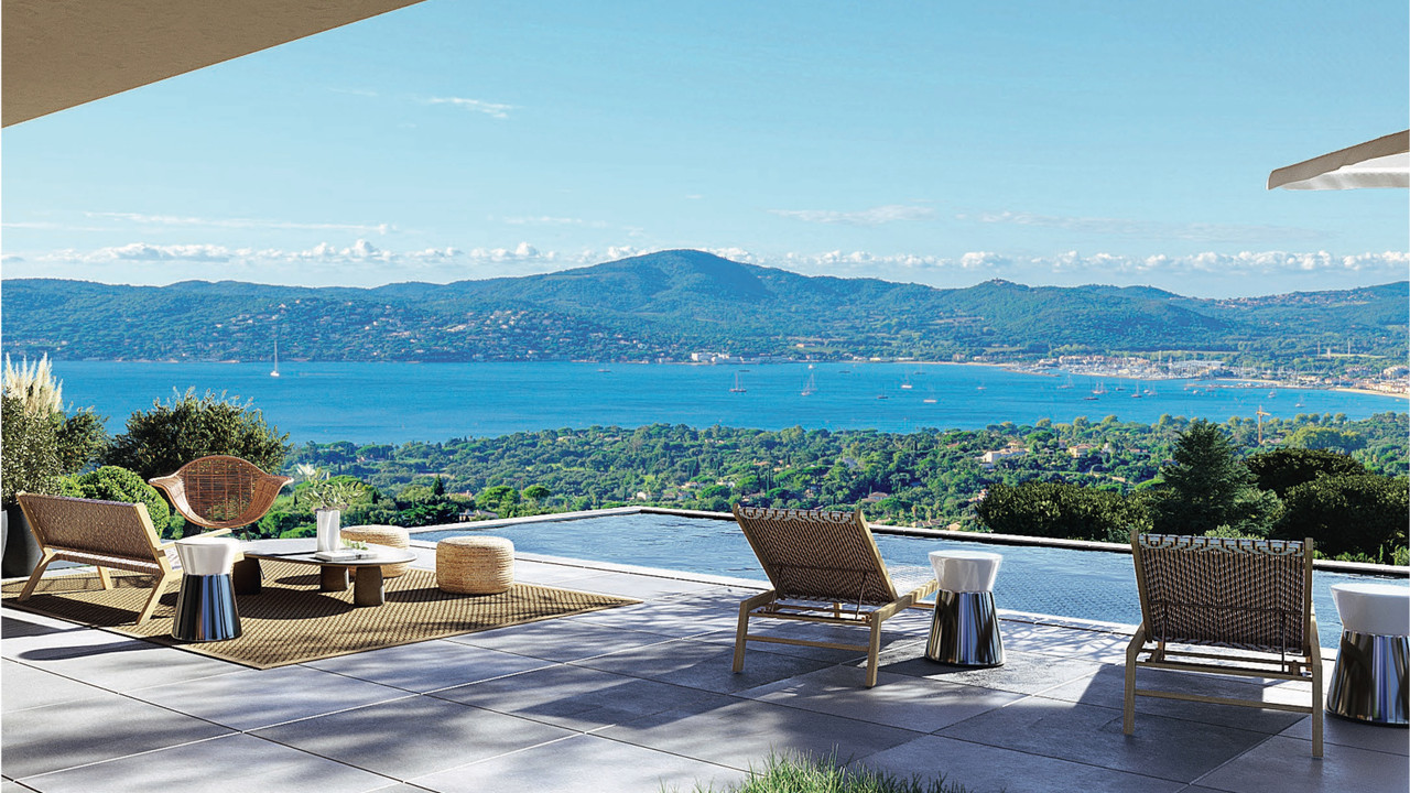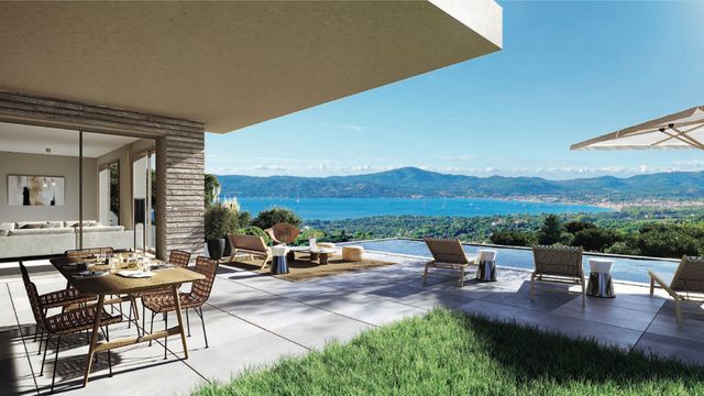 Within one of Beauvallon's most sought-after private and secure estates, a stunning new villa offering panoramic views over the Gulf of Saint-Tropez and the surrounding hills.