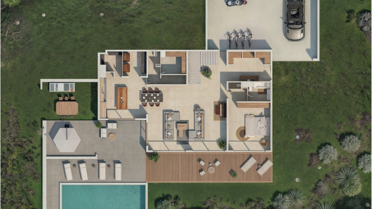 Its contemporary architecture reveals bright and spacious volumes arranged over two levels, including a vast living area opening onto terraces and poolside decks, creating perfect continuity between the interior and exterior.
