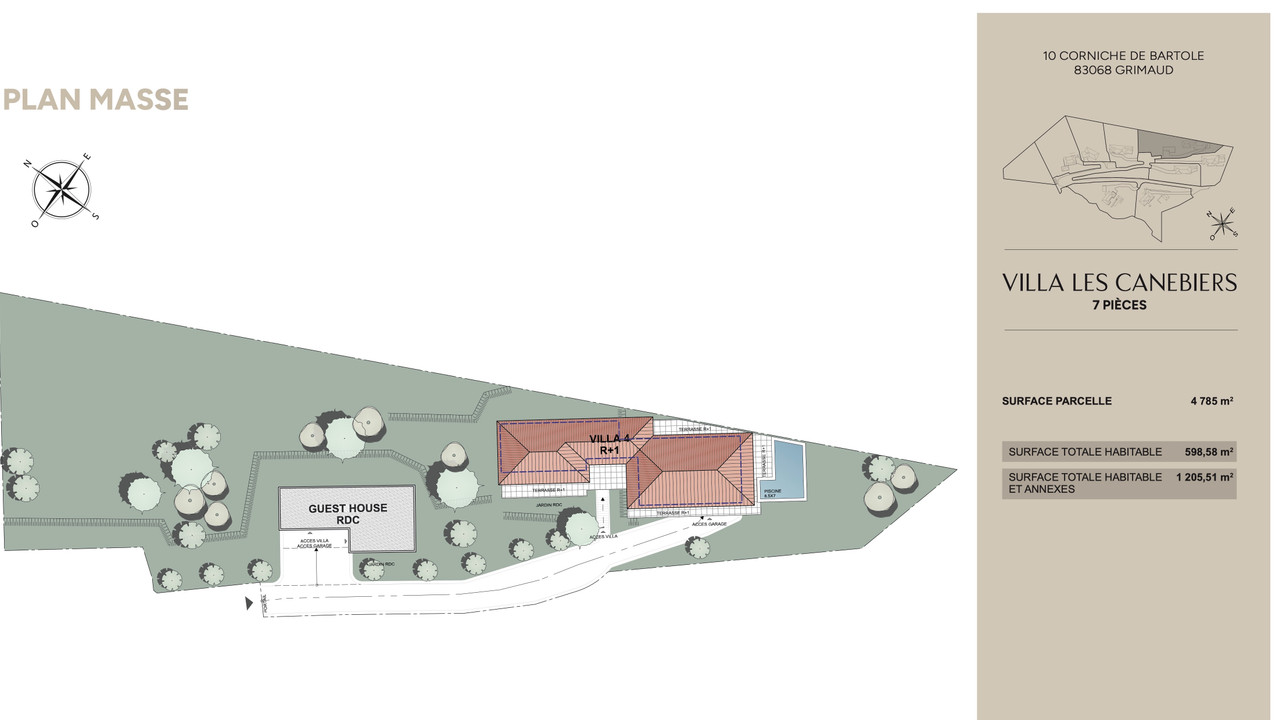 Its contemporary architecture reveals bright spaces over two levels, with a vast 140m² living area opening onto terraces and the pool area, creating a perfect continuity between indoors and outdoors, 4 suites with dressing rooms and bathrooms, laundry room, pantry, wine cellar, fitness room, and a 4-car garage.