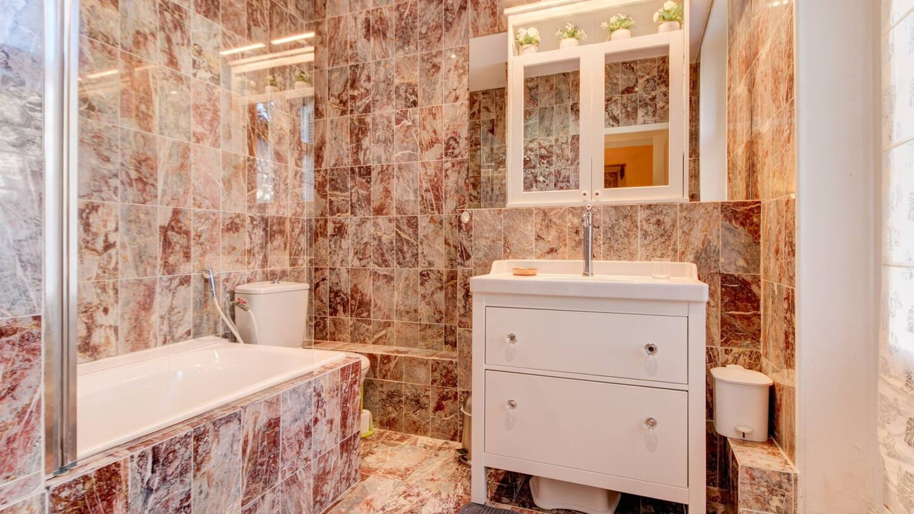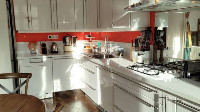 Ground floor apartment, 117 sq m. 4 rooms, 3 beds, 2 baths. Garage & garden 200m². 2 staff rooms
