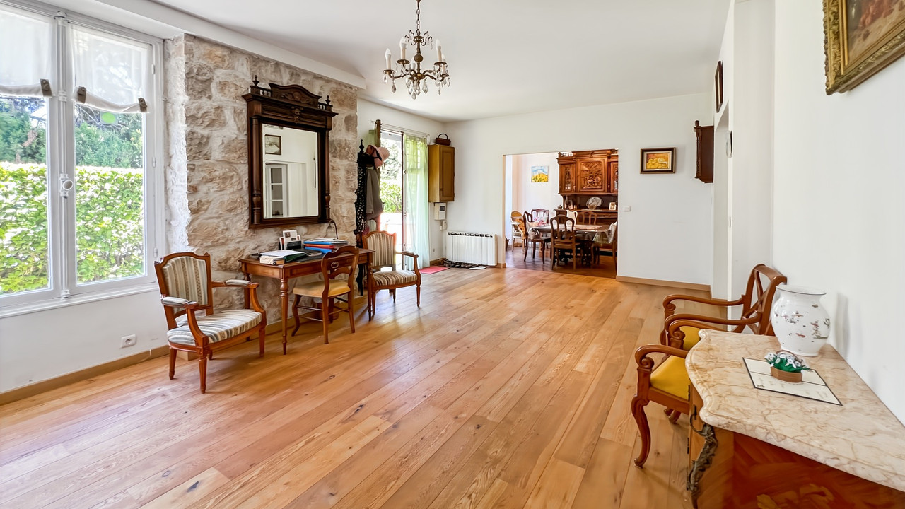 In a Belle Époque-style villa, built of freestone, with original parquet floors, high ceilings, and preserved moldings, this dual-aspect apartment benefits from triple exposure, offering exceptional brightness and a rare level of comfort.