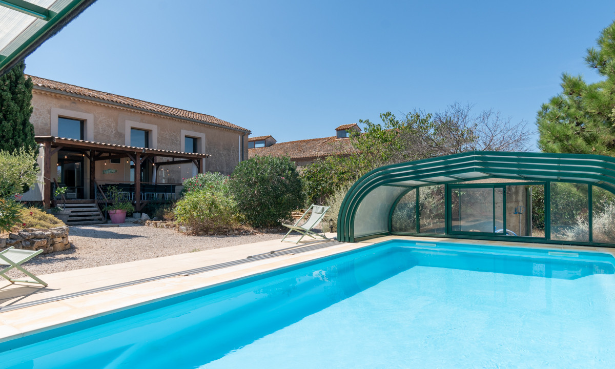 A38780JAV11 - In the heart of the Corbières wine region, this exceptional early 1900s domaine blends character and modern comfort. Fully renovated, it offers 580 m² including a spectacular 90 m² cathedral-style living room with open Italian kitchen, 6 elegant en-suite bedrooms, and two independent gîtes with private terraces. Comfort is assured with floor heating, full air conditioning, ground-source heat pump, solar panels, and excellent energy ratings. On 2,530 m² of landscaped Mediterranean gardens, enjoy a covered terrace, pool with cover, pétanque court, and shaded seating areas. A vast 253 m² garage and parking for 10 cars complete the property.