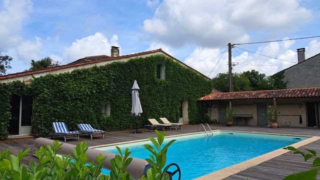 Expansive 474m² of living space, including 9 bedrooms, a grand living room, and a charming kitchen with a 30m² fireplace.Enjoy 8,216m² of wooded grounds featuring a south-facing 5x10m swimming pool and ample outdoor space. Includes a 120m² wine storehouse, a 7-space gravelled car park, and a 44m² converted mezzanine.Option to purchase three adjoining 50m² houses, each with their own outdoor areas.
