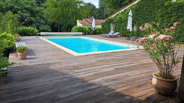 A31008GM33 - Discover an exquisite stone property in the heart of the Médoc vineyards, offering a luxurious and tranquil lifestyle. Located in the serene locality of La Pigotte, Blaignan-Prignac, this luminous house boasts extensive living space and beautiful outdoor areas, including a south-facing pool and a wine storehouse. With the potential for further expansion, this property is a rare gem in an idyllic setting.