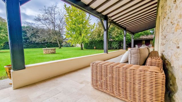 Bright airy living spaces with exposed stone throughout. Situated on a 3500 m² manicured private park, the pool and pool house with bathroom and summer kitchen provide an oasis in a bucolic setting. The covered terrace to the rear of the property offers several options Outbuildings include a renovated 80 m² garage for collectable vehicles or artist's workshop.