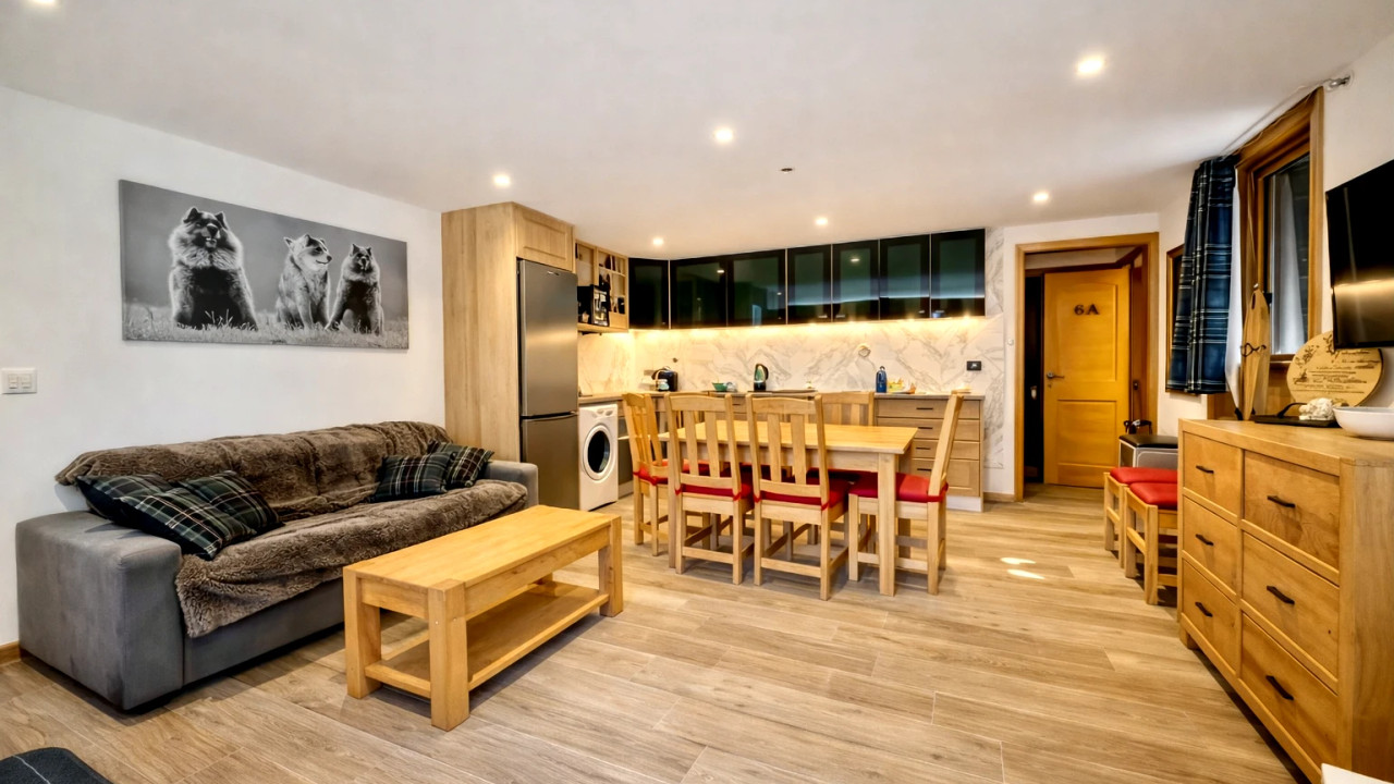 2nd apartment: Level 0: Open-plan living / dining area with a fully equipped kitchen, WC, 3 ensuite bedrooms, outdoor ski locker and boot warmers.