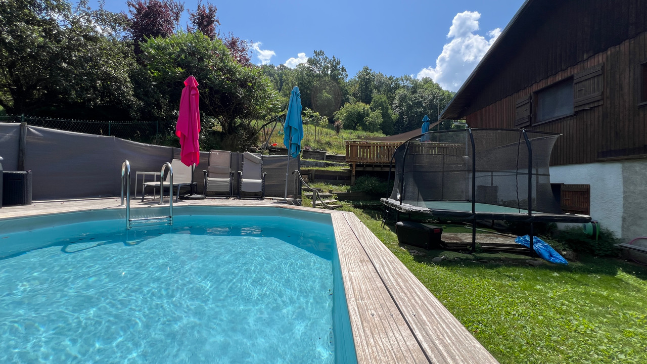 Step outside to discover your own private oasis. The beautifully maintained garden features a sparkling swimming pool, offering a tranquil space to relax and soak in the sun. With a private garage and ample parking, there's plenty of room for all your vehicles and guests. This exceptional home is a rare find, combining privacy, space, and spectacular scenery just moments from all the amenities of Bourg Saint Maurice.