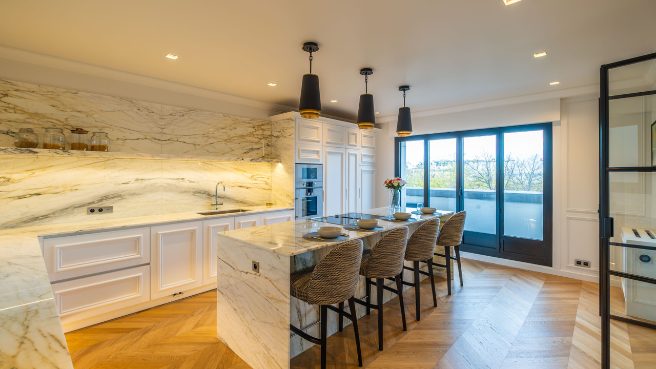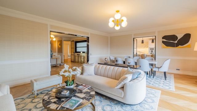 A28358HHE75 - Immerse yourself in the epitome of Parisian elegance with this stunning luxury apartment, ideally located overlooking the Champ de Mars and boasting breathtaking views of the iconic Eiffel Tower from its balcony. Renovated by an architect in 2024, this contemporary home offers comforts, bespoke interior design and spacious living areas. The elegant main room with expansive large window-doors inviting Paris's most iconic landmarks into the space. The gourmet kitchen features a large Italian marble island and high-end Gaggenau appliances, while the four luxurious bedrooms come with dressing space and generously sized bathrooms, featuring Italian marble and underfloor heating. With a private entrance from the elevator, separate studio, three cellars, and a garage, this turnkey-ready apartment offers 265 m2 of luxury living space, promising a lifestyle of unparalleled sophistication in the heart of Paris's historic charm.