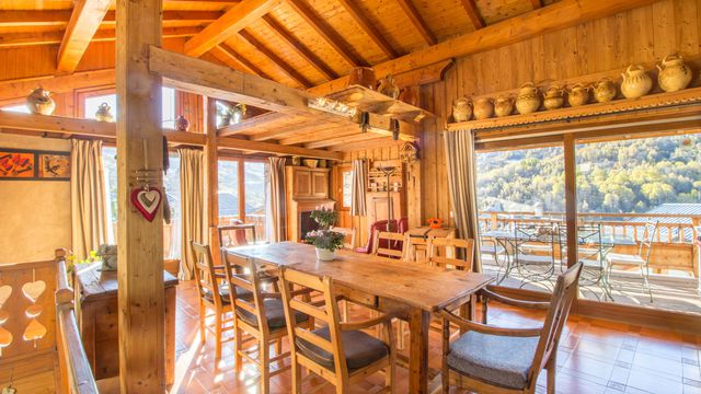 A25850LDS73 - Nestling in the village of Saint Marcel, this Savoyard chalet is a haven of peace for those seeking both adventure and tranquility. This charming home perfectly combines rustic charm and comfort. The property comprises 4 bedrooms, a living room opening onto the kitchen with dining area and lounge, two WCs, three bathrooms, a mezzanine, a separate apartment with a double bedroom and a blind bunk room and a garage.