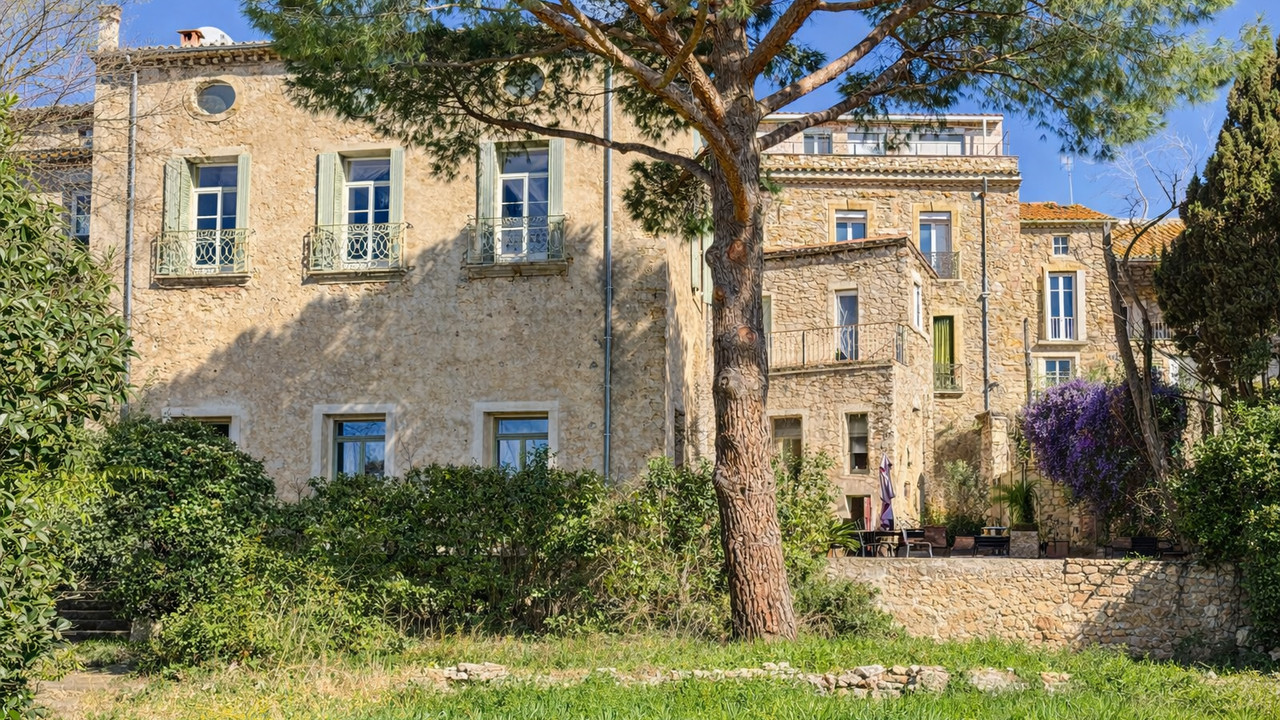 A34112DAL34 - Large maison de maître offering 375 m² of living space over three floors, with a large terrace & garden with great views. The property features a bright 89 m² open-plan living area, seven bedrooms, four bathrooms, and an additional 54 m² lounge with views towards the coast. There is plenty of space for a large family or the potential of creating a business. located just a few minutes walk from the centre of the village that offers a lively community and lots of amenties including two great resturants, wine bar and bakery.