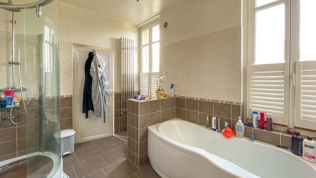 2nd floor: 5 bedrooms to upgrade, bathroom, a games room and an attic. Basement: laundry, boiler room, workshop, storage rooms and wine cellar. Independent high class Gîte comprising living room, kitchen, WC, 2 bedrooms and a bathroom. Outside: terrace overlooking gardens with some exceptional trees, and a natural spring. Parking: garages and off road parking through automatic gates. Transport: rail links to Paris, just 50 mins by car to Paris CDG airport.
