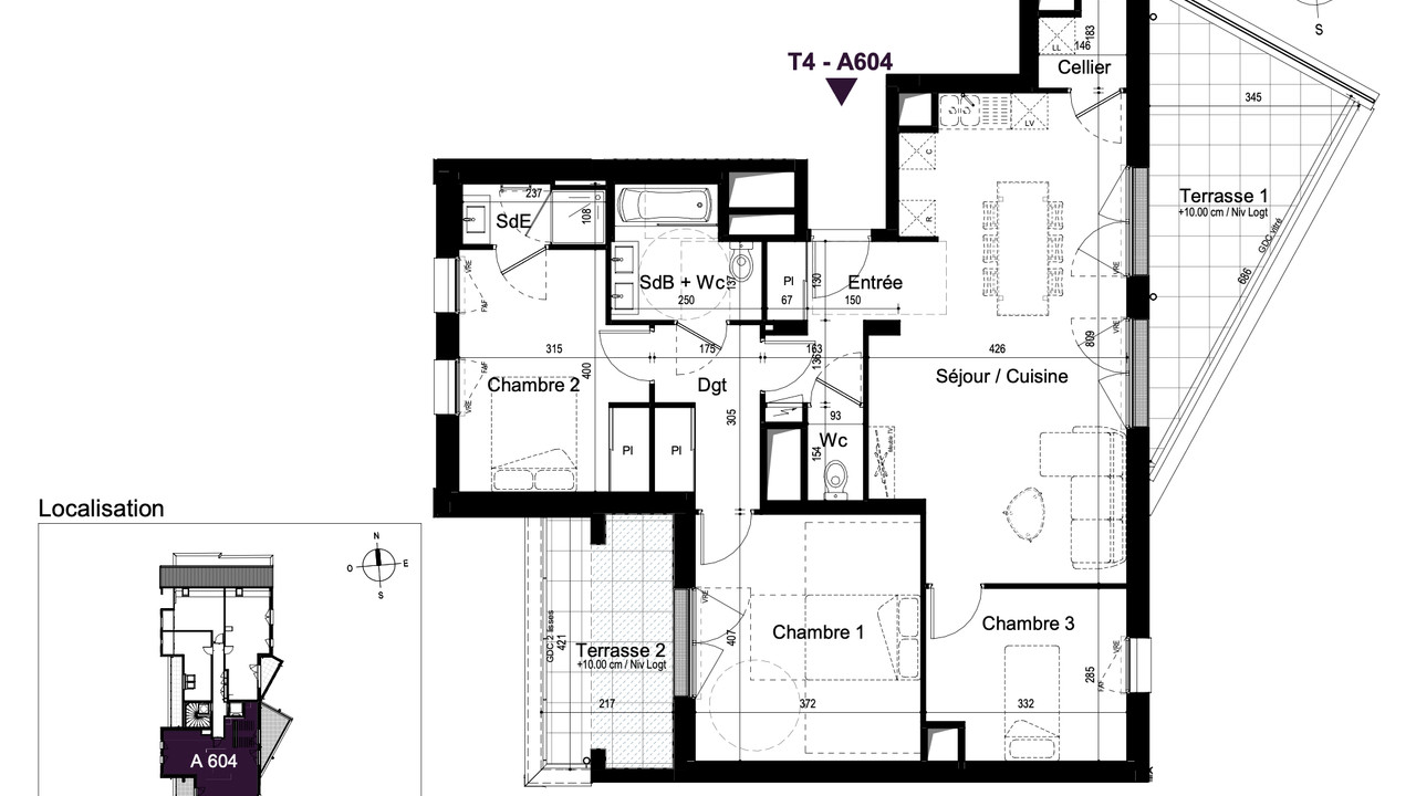 NEUF Magnifique T4 traversant au 6 étage proche port et Ville Close 2 Terrasses 2 Parkings LIVRAIS
