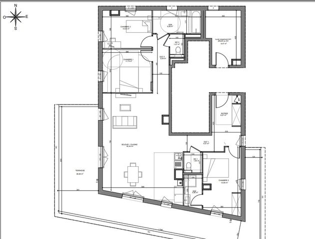 Newbuild, spacious penthouse with U shape terrace 66m2; 3 bedrooms, center of St Julien et Genevois