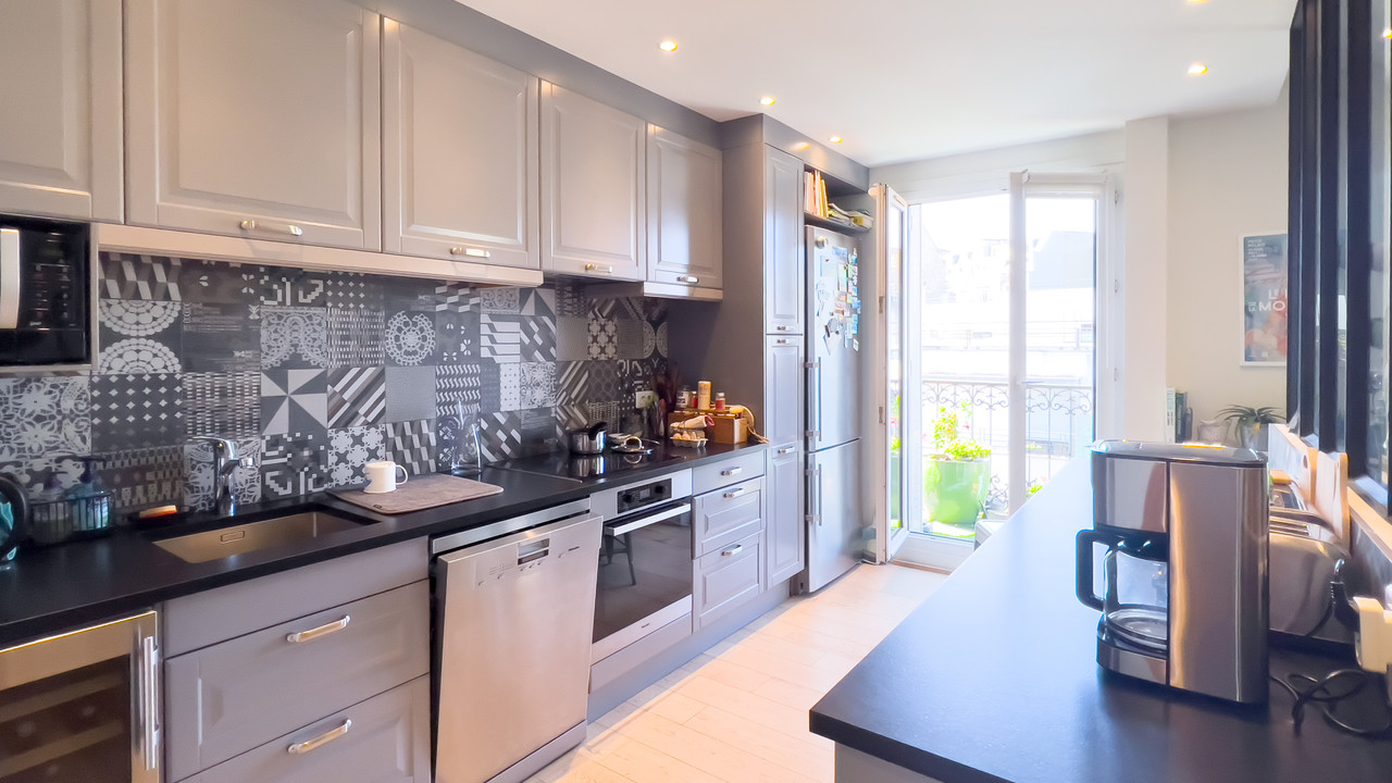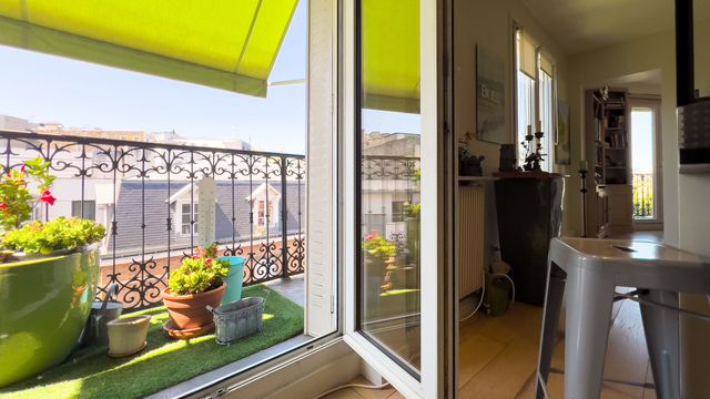 A38514DPE75 - PARIS 75016, between Champs-Elysée and Trocadéro - 105m2 + 16m2 South-West facing balconies - EPC E/E - See 360 visit and flooplan - Bathed in light with an unobstructed view of the sky for this 2 bed corner duplex on the top 2 floors of a very attractive well-maintained and secure Hausmann building dating from 1890 with lift. A very chic location for this property, with its 7 full-height windows providing exceptional light, a welcoming entrance hall, a bright 25m2 living room, a very attractive bespoke 11m2 kitchen opening onto the 15m2 dining room, a bathroom and separate WC. The upper duplex includes a study, 2 bedrooms, 2 balconies (1.4m2) and 1 shower room with laundry area. A cellar completes this dbl exposure property with no vis-a-vis over the Paris rooftops, located between Boissière and Victor Hugo, a residential and cosmopolitan district that also reinforces its international character, rich in history, culture and architecture, just a stone's throw from the St-Didier market Information about risks to which this property is exposed is available on the Géorisques website : https://www.georisques.gouv.fr