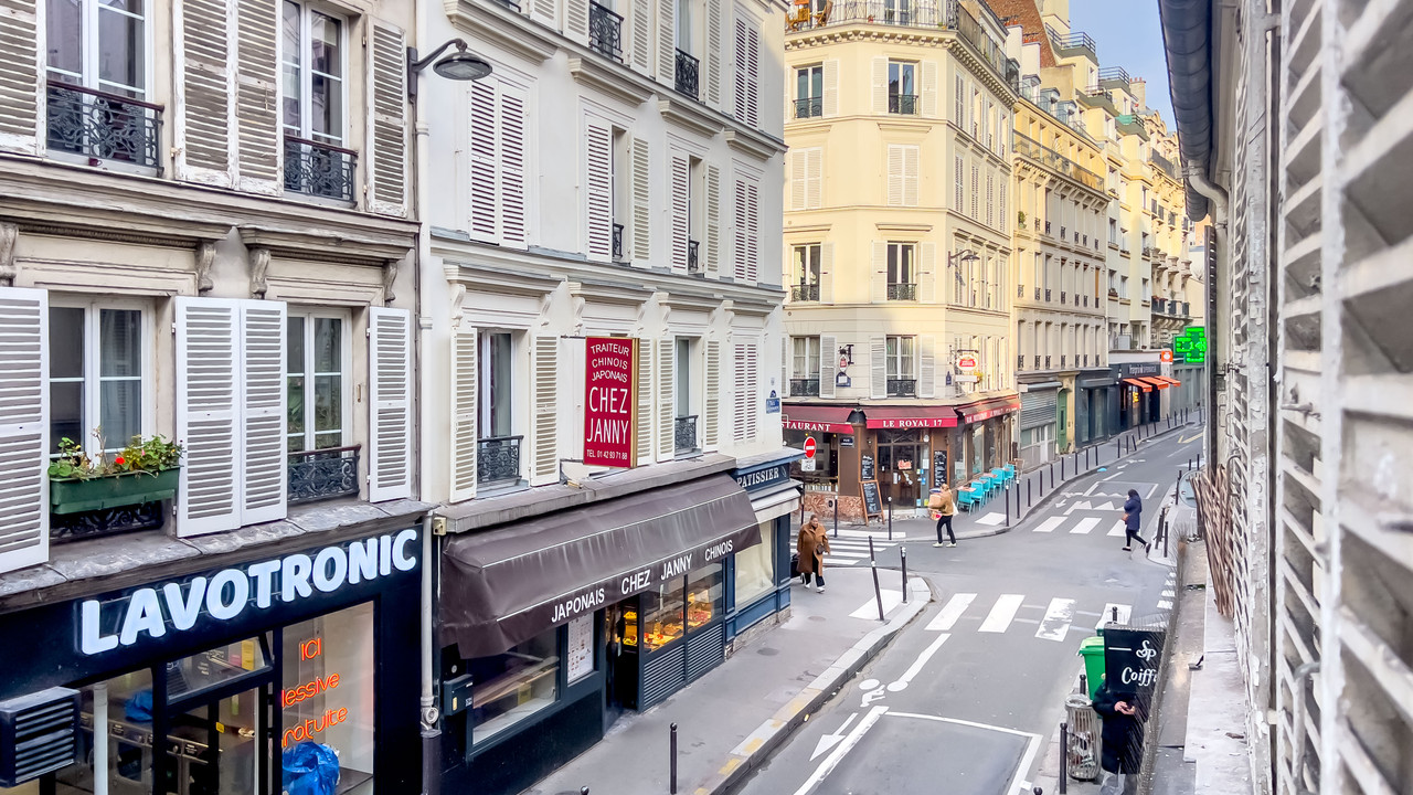 Ideally located Rue de la Condamine, a lively but residential area close to transport links, with a typically Parisian neighbourhood atmosphere and local shops and services (mini-markets, restaurants, cafés, etc.), making it a convenient place to live.