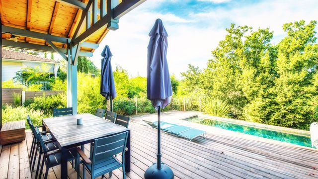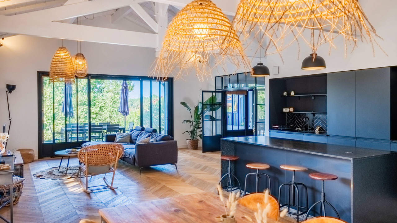 A31971GM33 - Close to the Dune du Pilat and 10 minutes from Arcachon, this 172 m² villa is ideally located in the sought-after Portes de l'océan district, appreciated for its peace and quiet and proximity to shops. Set in 1,000 m² of land, it boasts top-of-the-range features, including a large, bright living room, a modern kitchen, a master suite with shower room and dressing room, and a heated Bali stone swimming pool. A spacious garage, carport, wine cellar and state-of-the-art equipment complete this elegant, comfortable property.