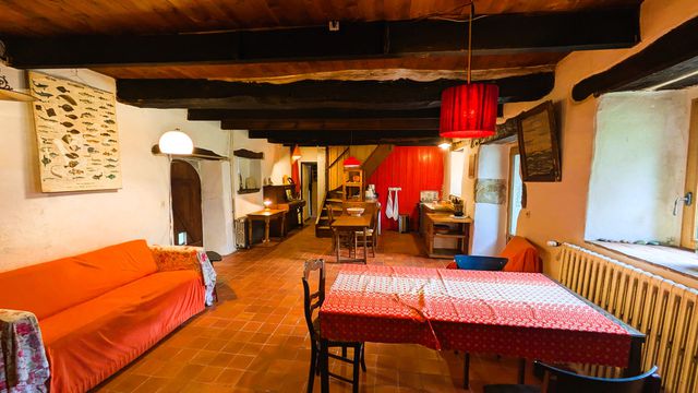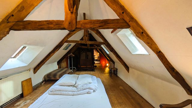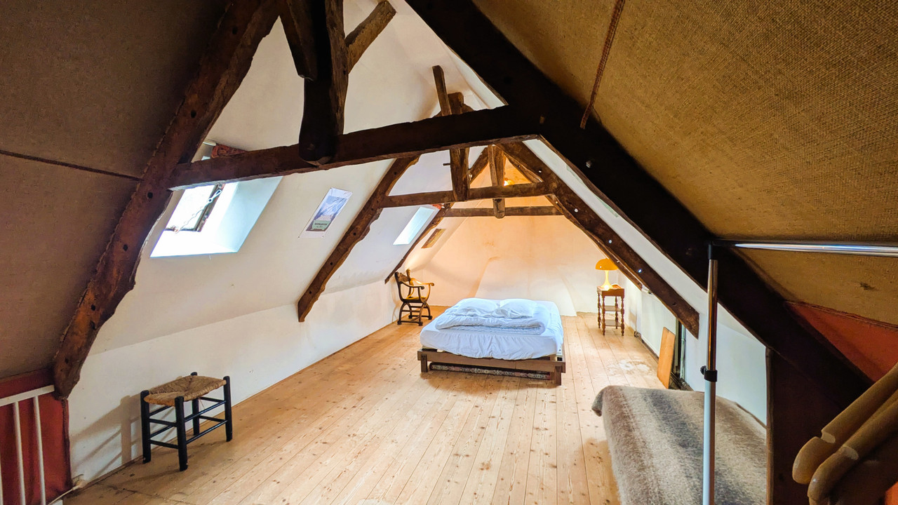 Habitable surface area of 214 m² on a plot of 7,833 m². For lovers of old stone and traditional timber framing, with slate and English tile roofing.