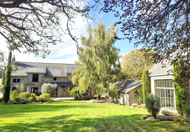 Set within a park of over 1.5 hectare, this dream property includes a magnificent, fully renovated house of 271 m² with 3 bedrooms and 3 bathrooms, a wellness space with a spa and sauna (141 m²), connected by a bright patio (this could also be turned into a guest house or a workspace ideal for business), a winter garden, a superb barn with horse stalls, a kennel, a decorative pond, and fields suitable for horses.