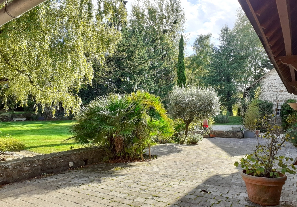 A40059ILH53 - Tucked away at the end of a long private driveway, yet only 2 km from Saint-Pierre-La-Cour and its shops, services and schools, this sumptuous property, rare on the market, has everything you may want. Composed of a family home and several outbuildings, it beautifully combines authenticity, wellness, and modernity.
