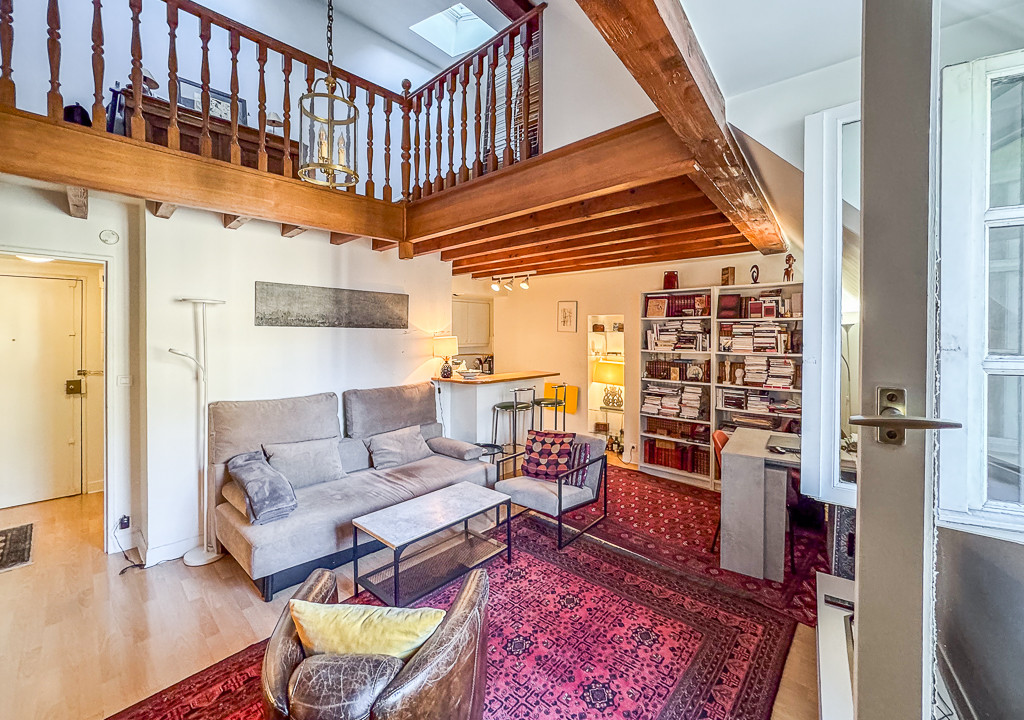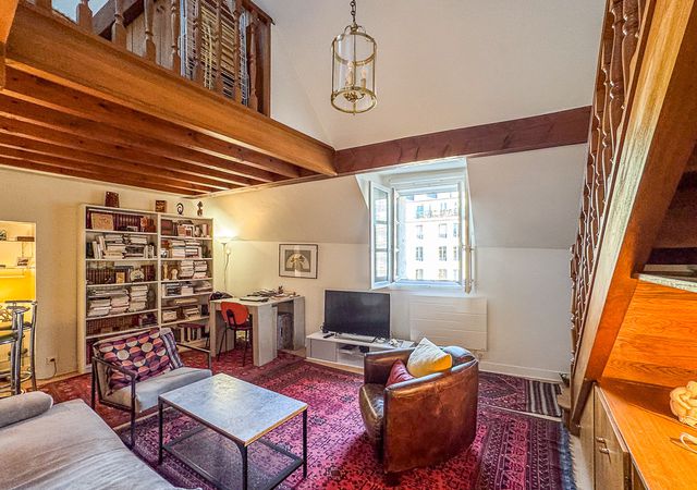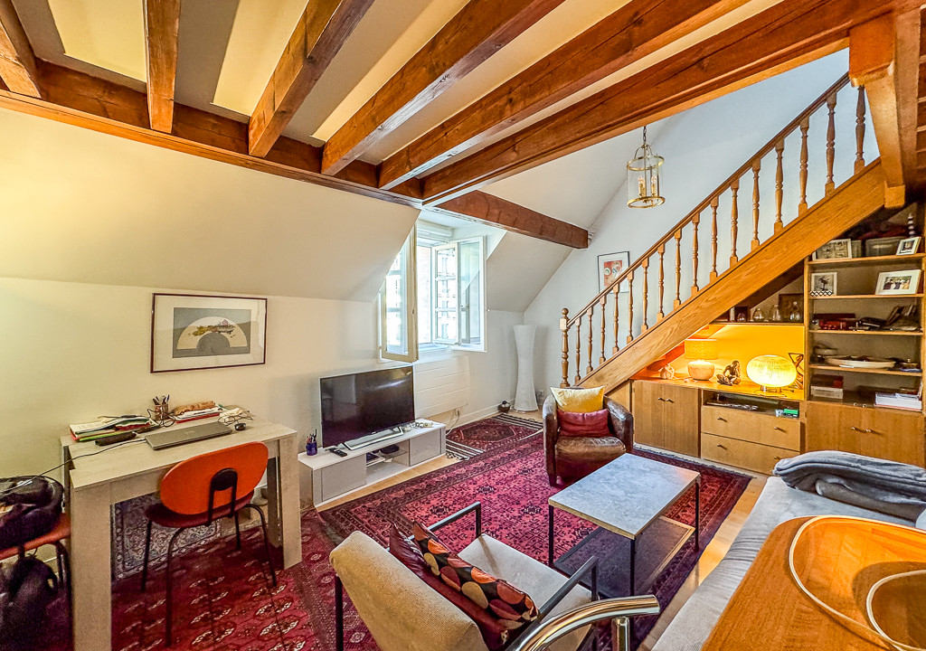 A40554HHE75 - SAINT PAUL – Located in the heart of the historic district, LEGGETT Immobilier exclusively presents this stunning duplex apartment of 46 m², situated on the top floor of a classified façade building, accessible by elevator. This bright property offers a beautiful living environment.