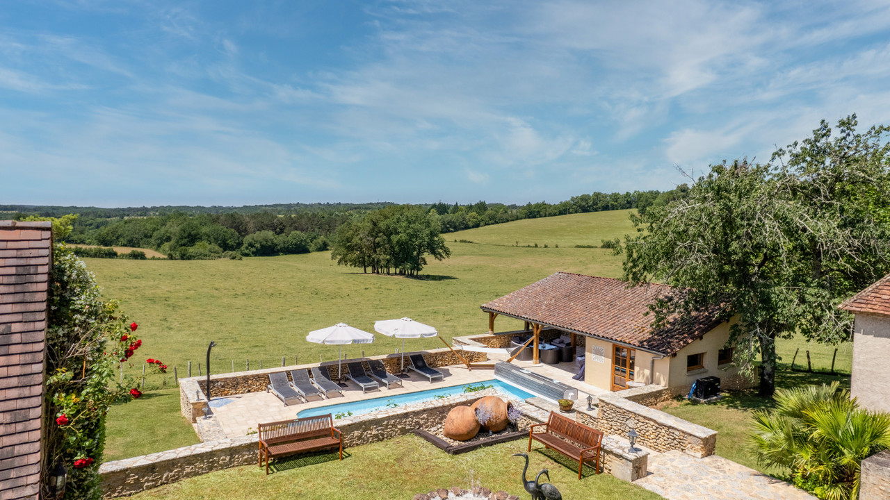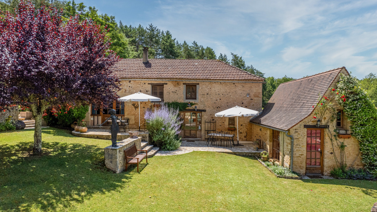 The main house, comfortable and welcoming, has two bedrooms and offers a pleasant living space, combining old-world charm with modern comfort. A few steps away, the large, fully equipped guesthouse has three bedrooms, making it ideal to welcome families. The smaller, more intimate guesthouse offers two bedrooms in an equally well-appointed setting.