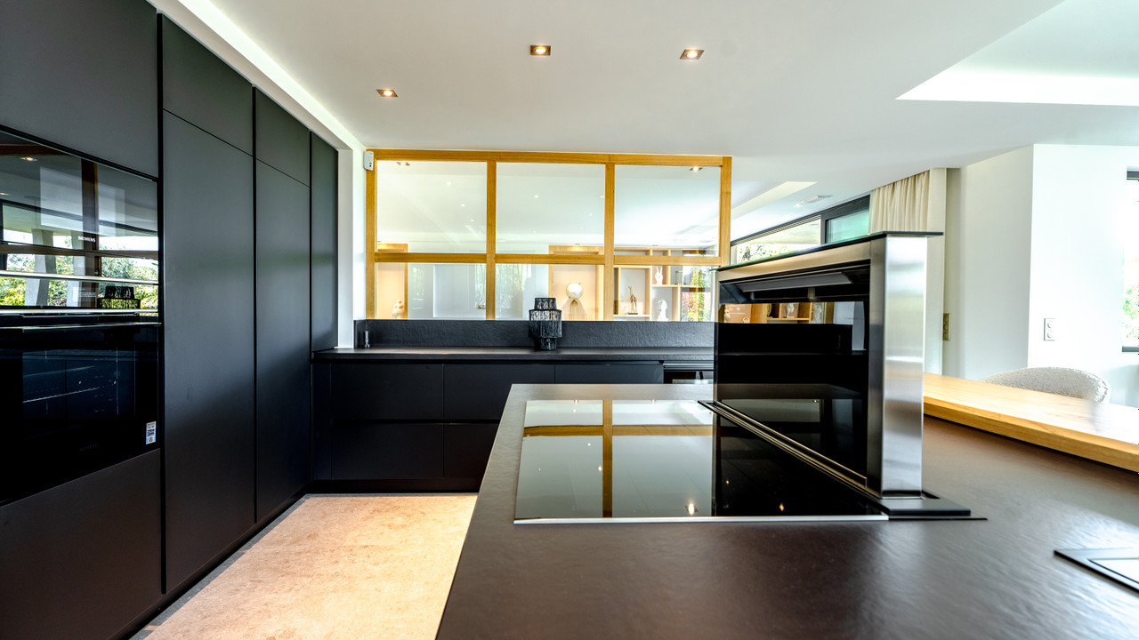 The night area offers four suites, including an exceptional master suite with solarium, dressing room, and bathroom.