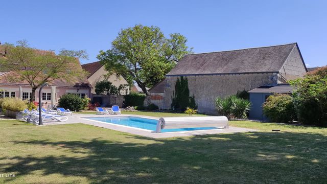 Former winegrower's farmhouse in Sologne, 25 minutes from Blois, comprising 13 rooms and 3200 m² of land in a peaceful setting not overlooked, 9x4 heated swimming pool facing south, 65 m² gîte, bowling green