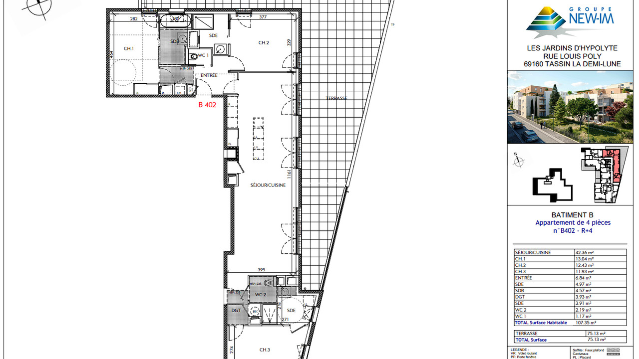 Spacious New 107 m² Top-Floor T4 (3 bedrooms) with 75 m² Panoramic Terrace • Tassin-la-Demi-Lune