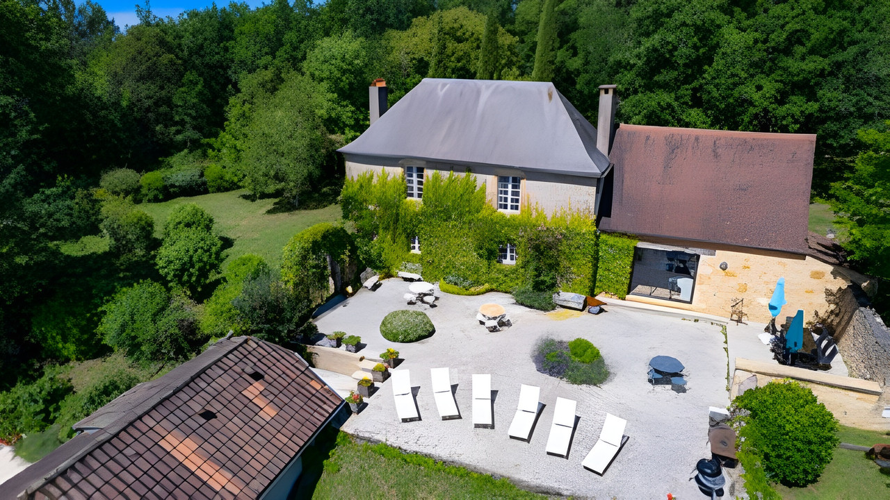 A37247RAD24 - A charming Périgordien stone manoir (150m2) with 3 bedrooms (7m2, 23m2, 12m2) a large open plan sitting/dining room (85m2), maison d'amie (73m2 ) with a further 3 bedrooms set on 2 hectares of land. Large, new (2024), heated swimming pool (9m x4m) 3 terraces, covered parking. No close neighbours and offering stunning countryside views. Not isolated as just 5 km to Montignac Lascaux and on the edge of a village.